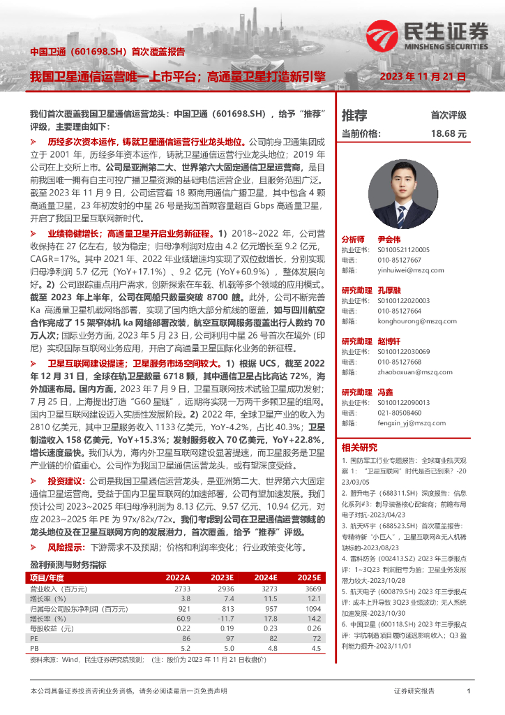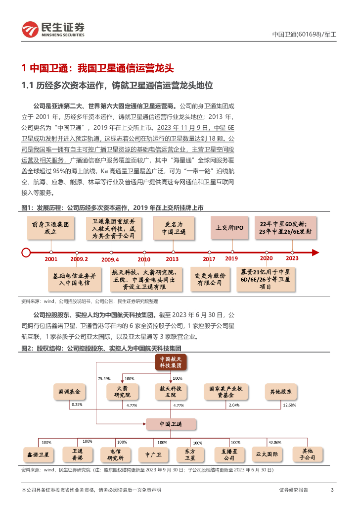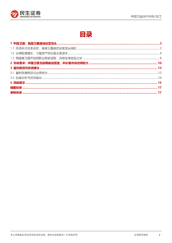 民生证券:中国卫通(601698)-我国卫星通信运营唯一上市平台;高通量卫星打造新引擎.pdf