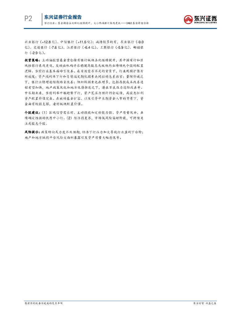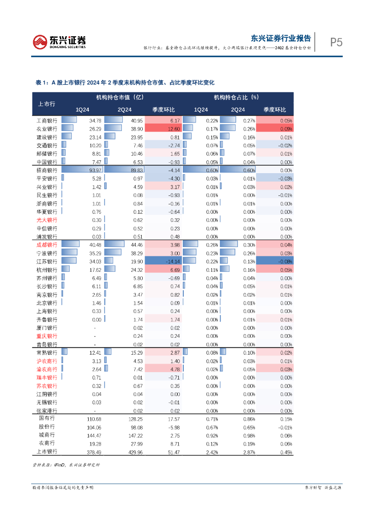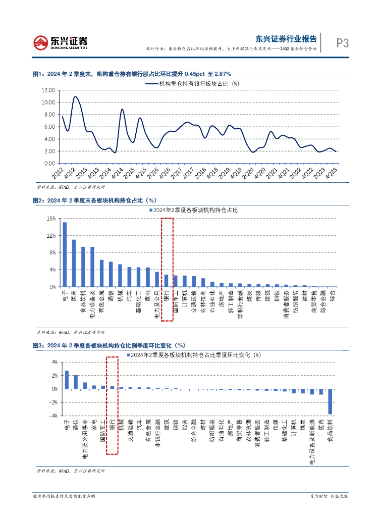 东兴证券:银行行业24Q2基金持仓分析:基金持仓占比环比继续提升,大小两端银行表现更优.pdf