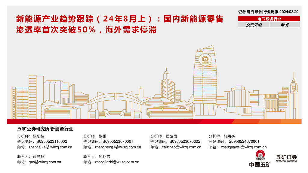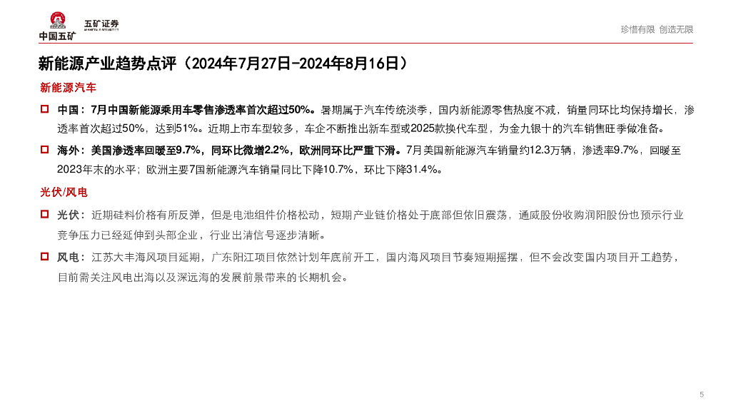 五矿证券:新能源产业趋势跟踪(24年8月上):国内新能源零售渗透率首次突破50%,海外需求停滞.pdf