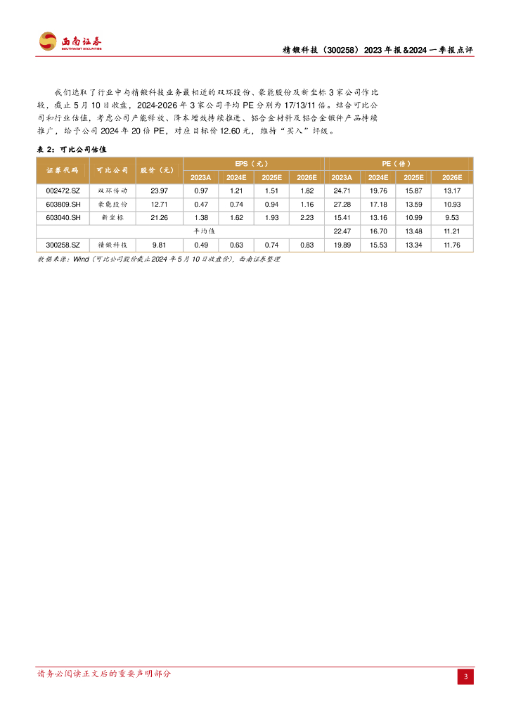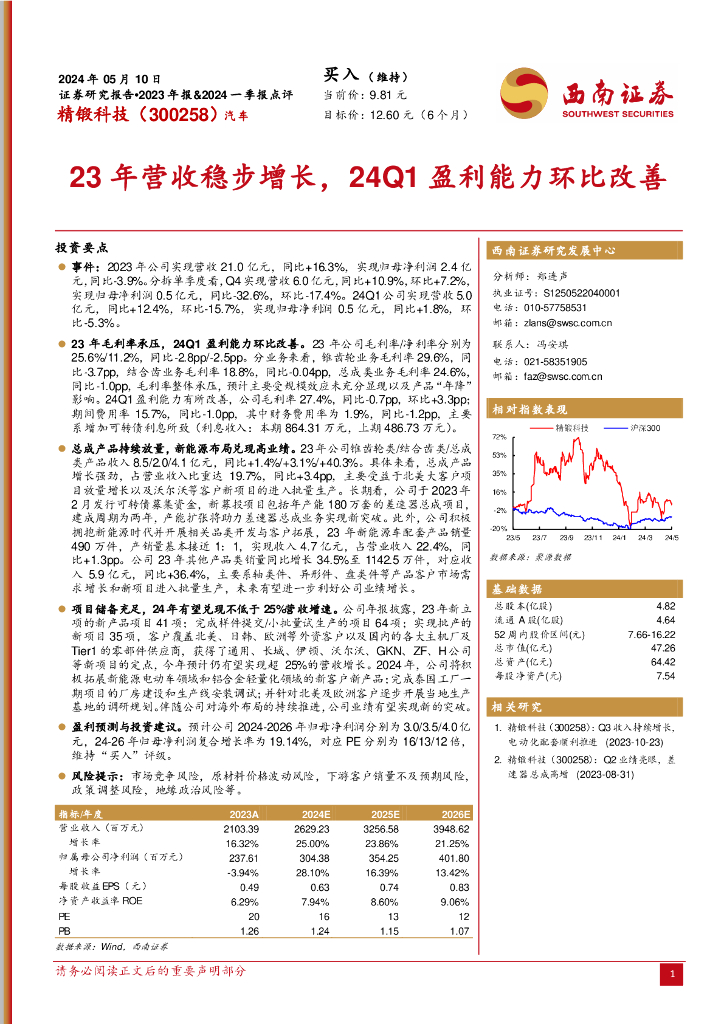 西南证券:精锻科技(300258)-23年营收稳步增长,24Q1盈利能力环比改善.pdf
