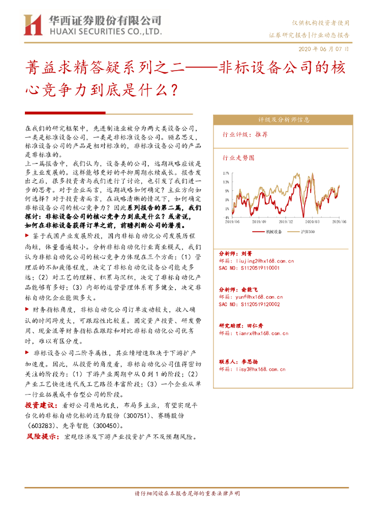 华西证券:先进制造业:菁益求精答疑系列之二——非标设备公司的核心竞争力到底是什么?.pdf