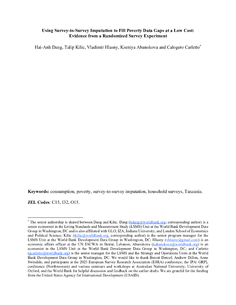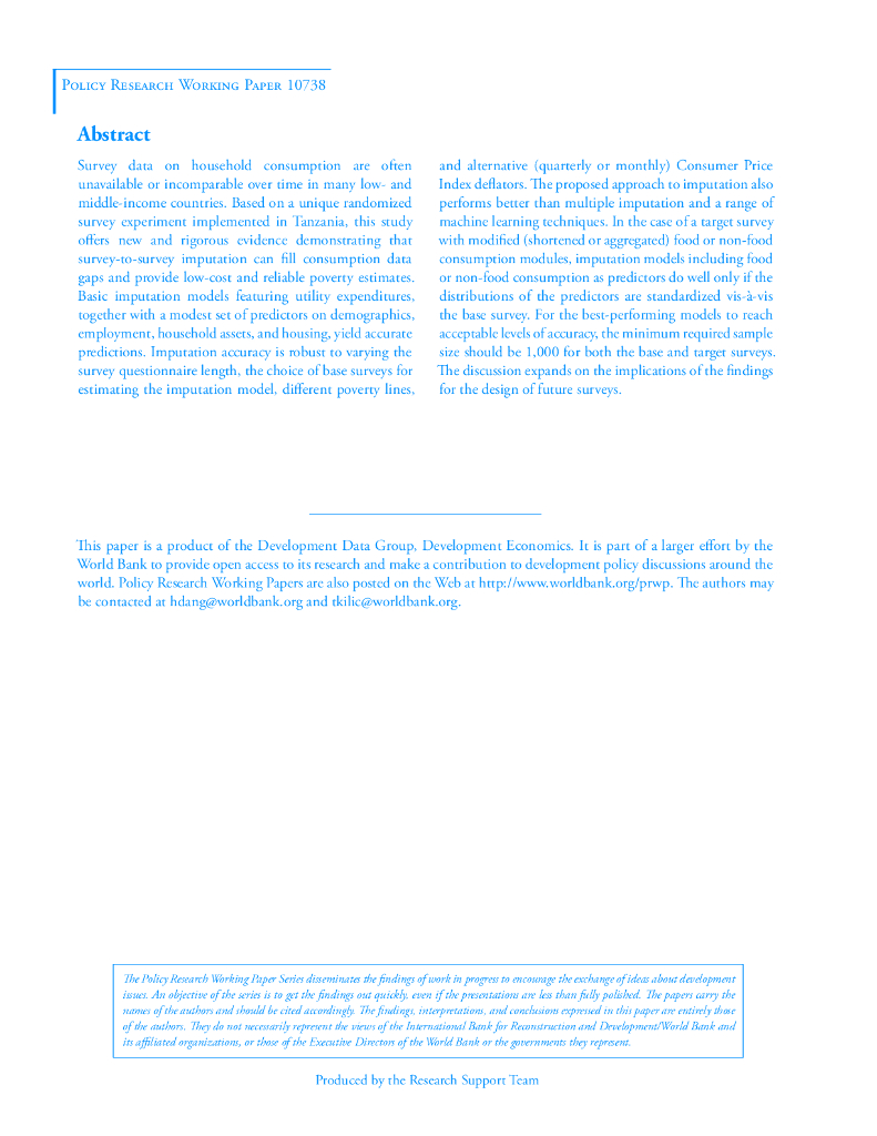 世界银行:利用调查对调查的推断以低成本填补贫困数据缺口:来自随机调查实验的证据(英文版).pdf