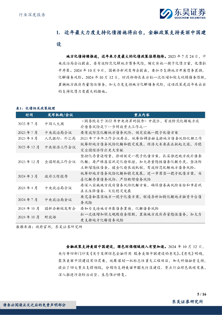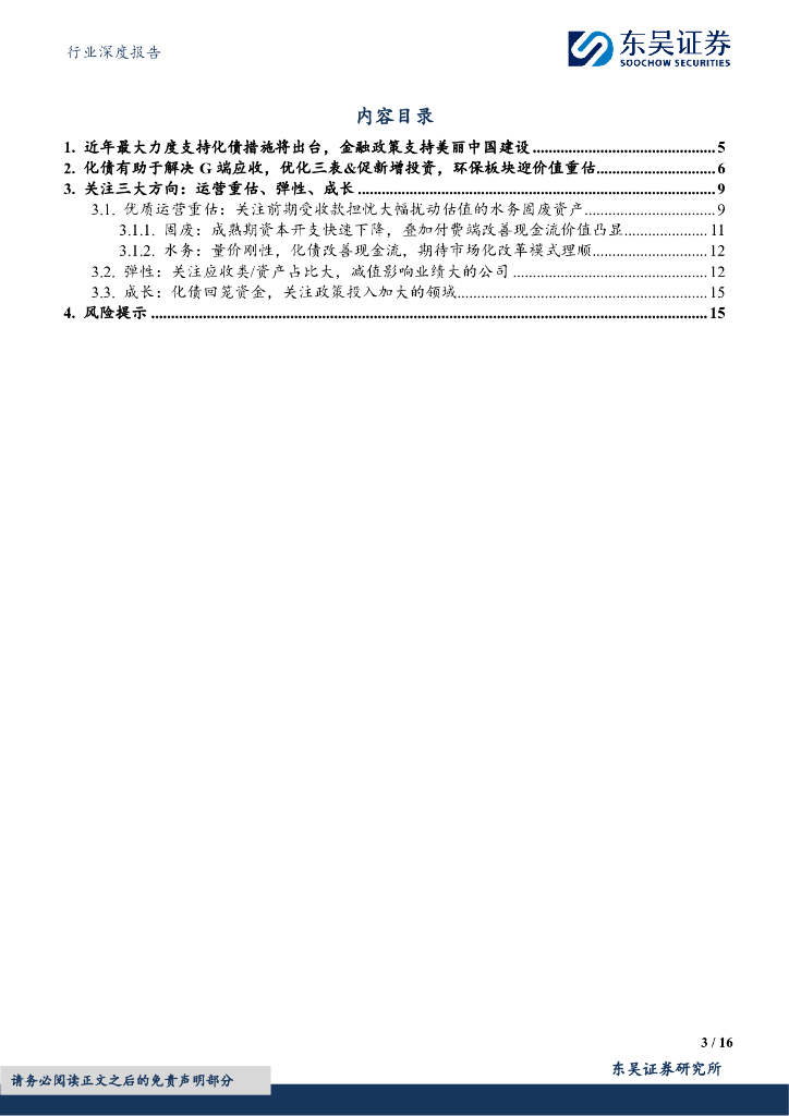 东吴证券:环保行业深度报告:环保受益化债:现金流/资产质量/估值,关注优质运营/弹性/成长三大方向.pdf