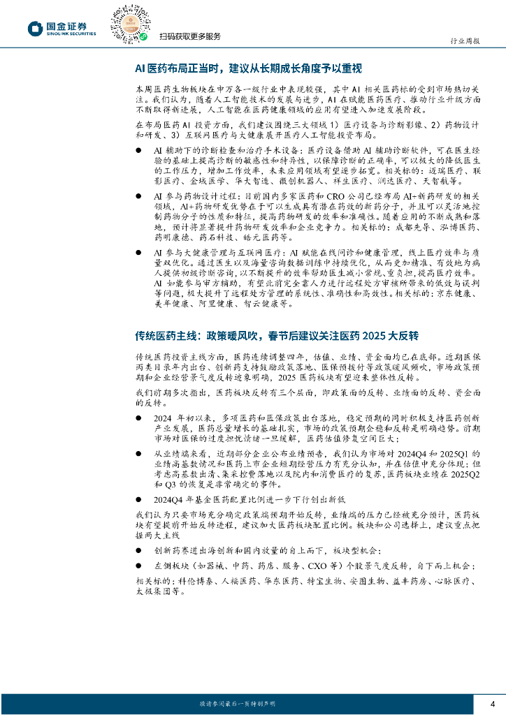 国金证券:医药健康行业研究:医药AI应用热度高涨值得布局,传统主线反转季报后降临.pdf