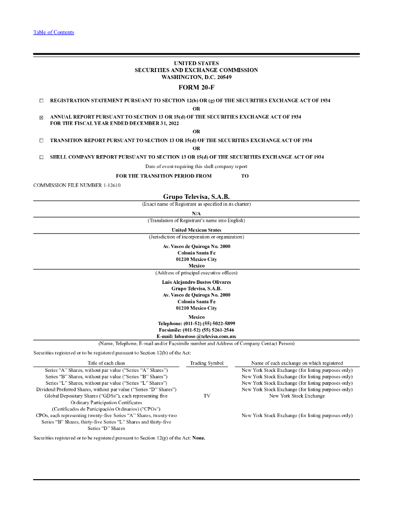 Grupo Televisa S.A.(TV)2022财年年度报告(英文版).pdf