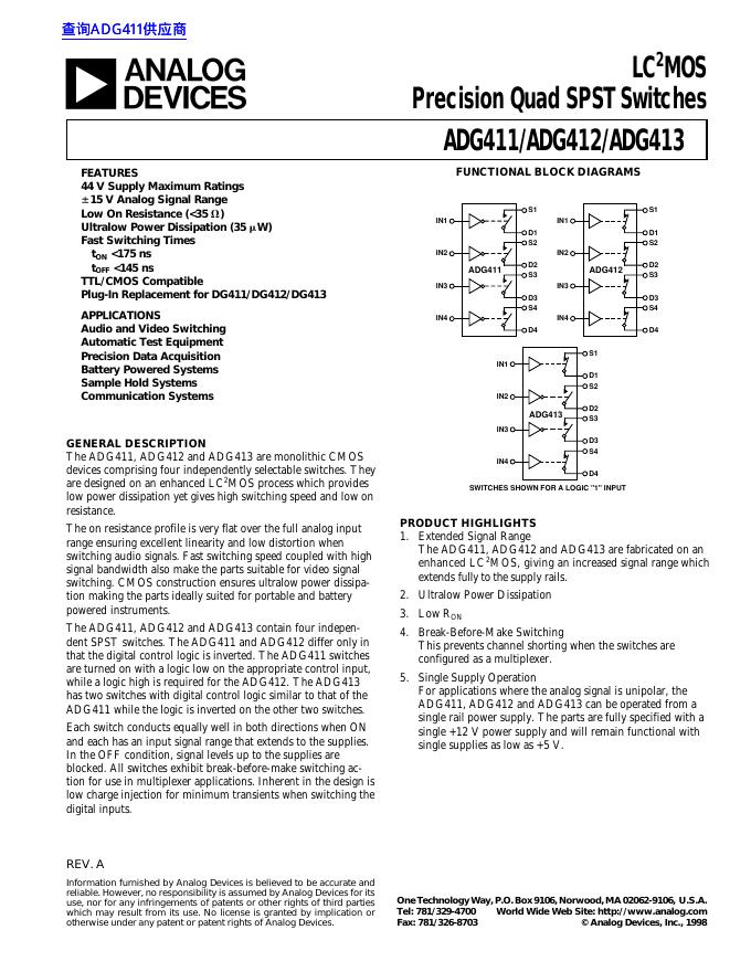 ANALOG DEVICES ADG411/ADG412/ADG413 数据手册.pdf