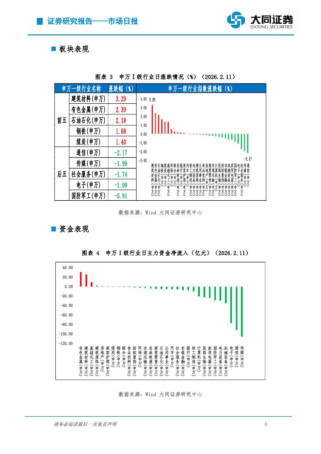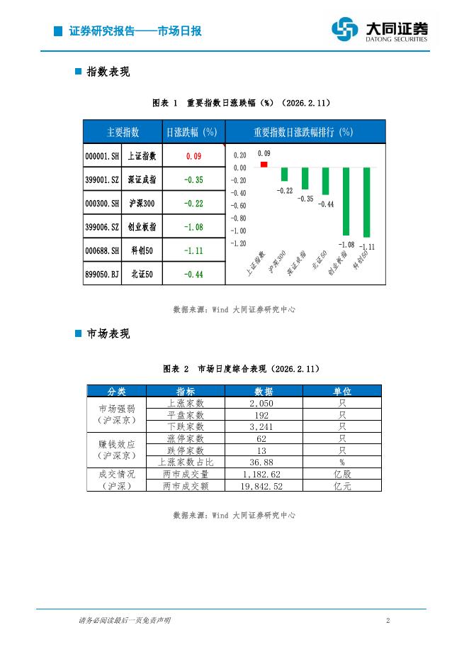 大同证券:市场日报:两市走势分化量能跌破2万亿-260212.pdf