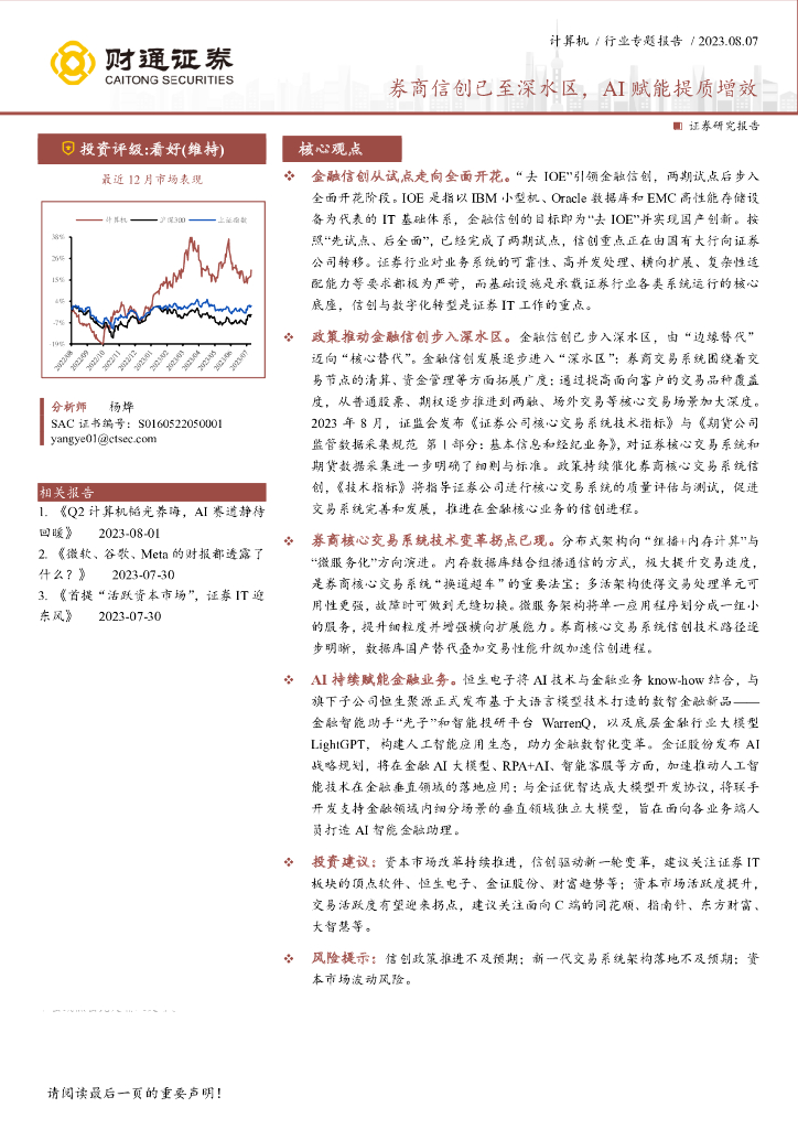 财通证券:计算机行业专题报告:券商信创已至深水区,AI赋能提质增效.pdf