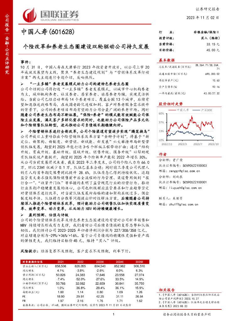 国联证券:中国人寿(601628)-个险改革和养老生态圈建设双轮驱动公司持久发展.pdf
