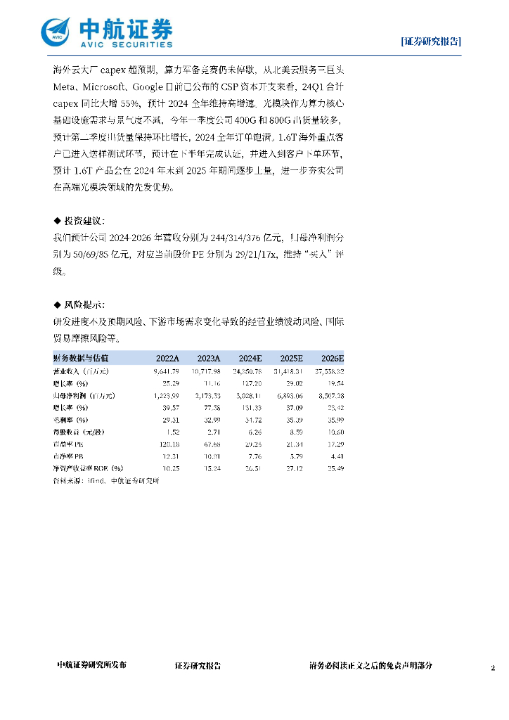 中航证券:中际旭创(300308)-2023年年报暨2024年一季报点评:高端产品放量业绩高增,1.6T进展顺利夯实高端市场先发优势.pdf