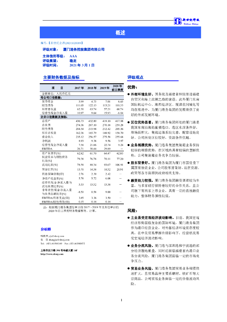新世纪:厦门港务控股集团有限公司信用评级报告.pdf
