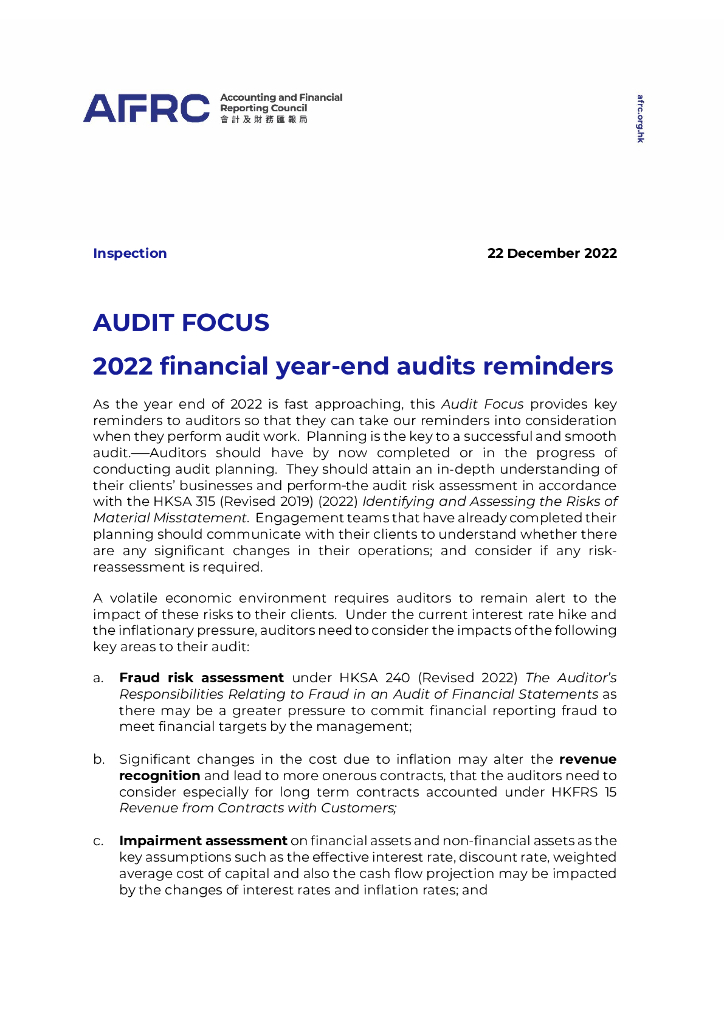 AFRC会计及财务汇报局:审计焦点:2022年度审计关注事项(英文版).pdf