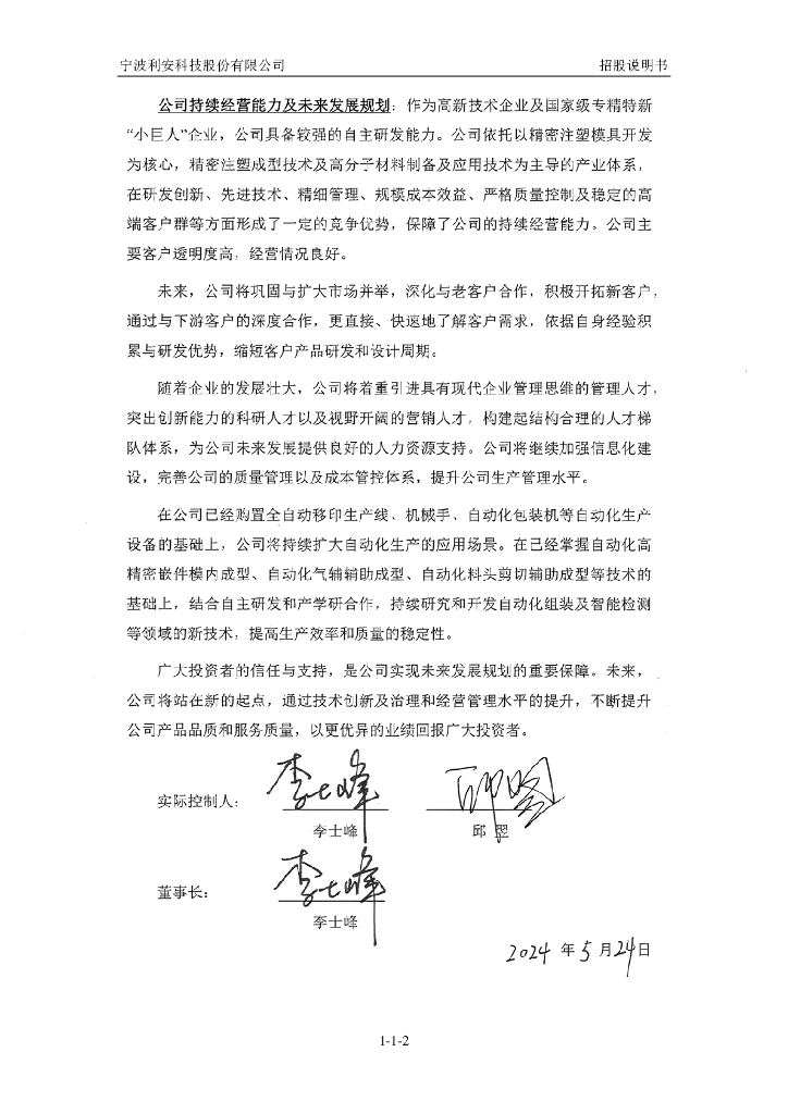 宁波利安科技股份有限公司创业板IPO上市招股说明书.pdf