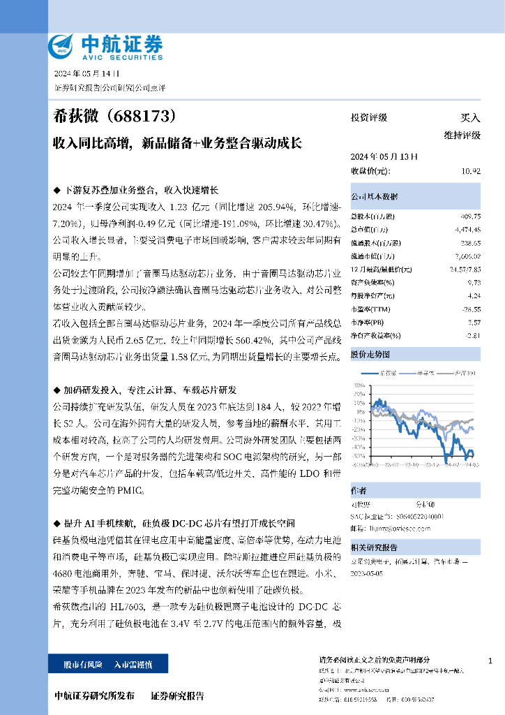 中航证券:希荻微(688173)-收入同比高增,新品储备+业务整合驱动成长.pdf