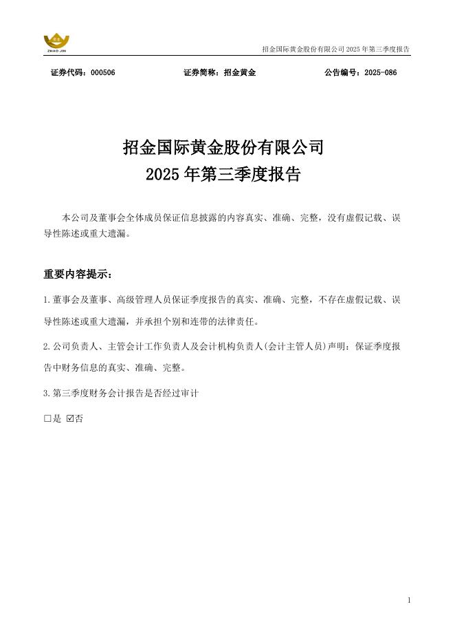 000506-招金黄金:2025年三季度报告.pdf