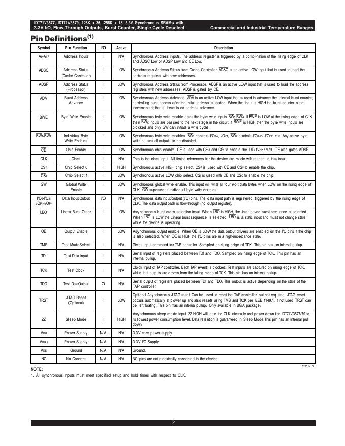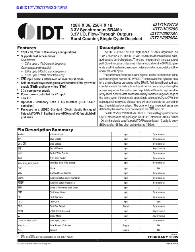 IDT IDT71V3577S/IDT71V3579S/IDT71V3577SA/IDT71V3579SA 数据手册.pdf