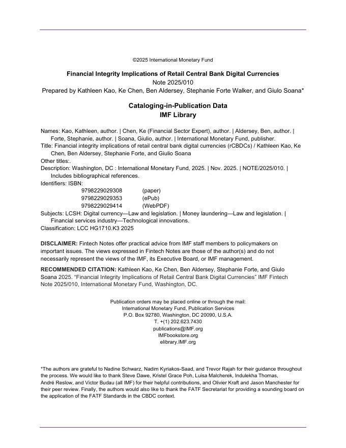国际货币基金组织:零售中央银行数字货币(rCBDCs)的财务完整性影响(英文版).pdf