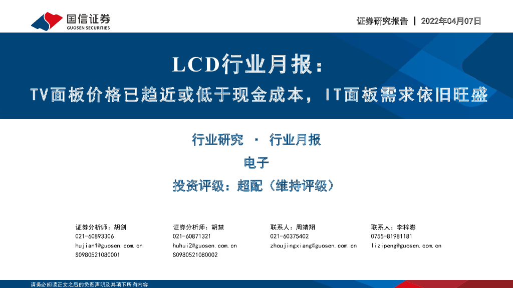 国信证券:LCD行业月报:TV面板价格已趋近或低于现金成本,IT面板需求依旧旺盛.pdf