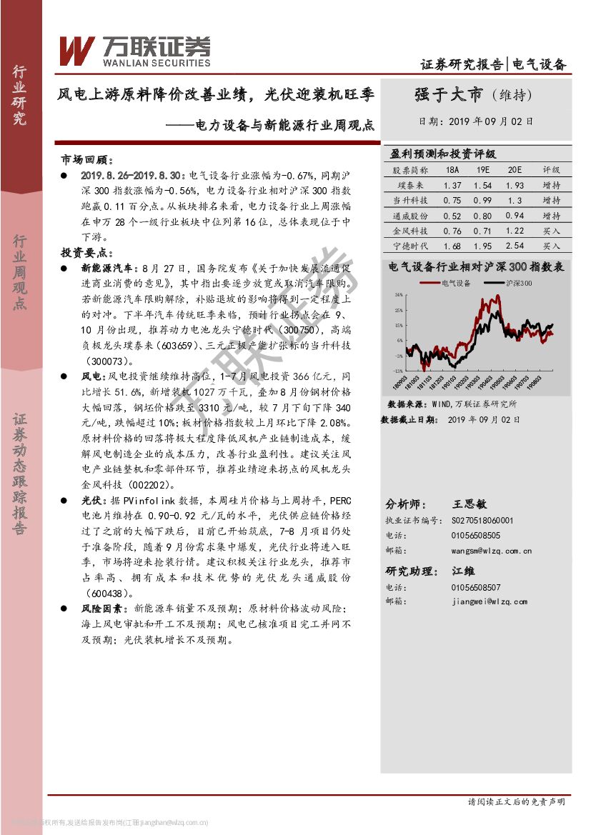 万联证券:电力设备与新能源行业周观点:风电上游原料降价改善业绩,光伏迎装机旺季.pdf