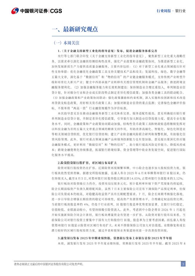 中国银河:银行业周报:新型工业化金融支持完善,险资对银行投资扩容.pdf