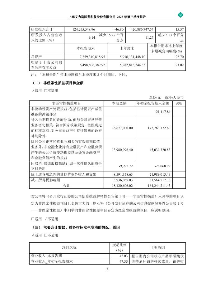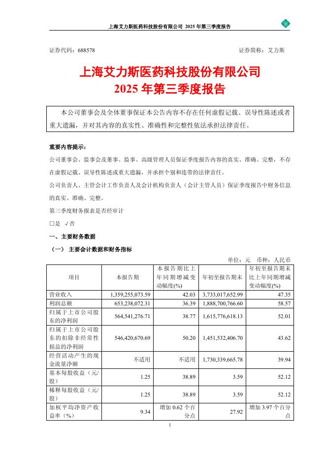 688578-艾力斯:上海艾力斯医药科技股份有限公司2025年第三季度报告.pdf