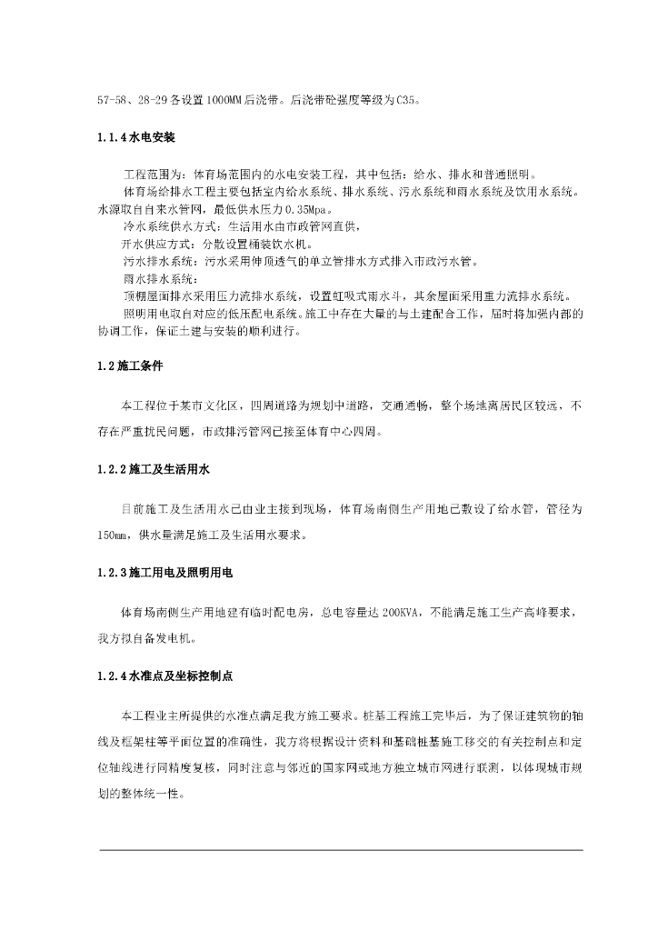 某市体育中心土建及给排水工程施工组织设计方案(Word.188页).doc