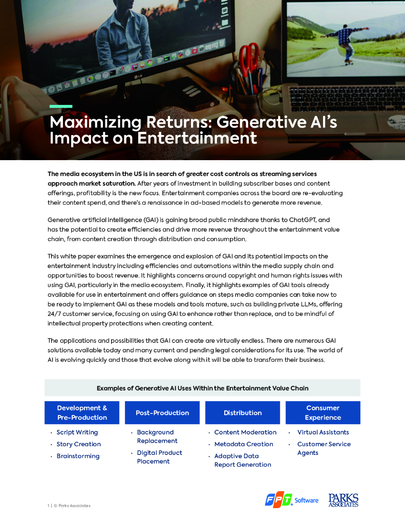 Parks Associates&FPT:2024年收益最大化:生成式AI对娱乐业的影响分析报告(英文版).pdf