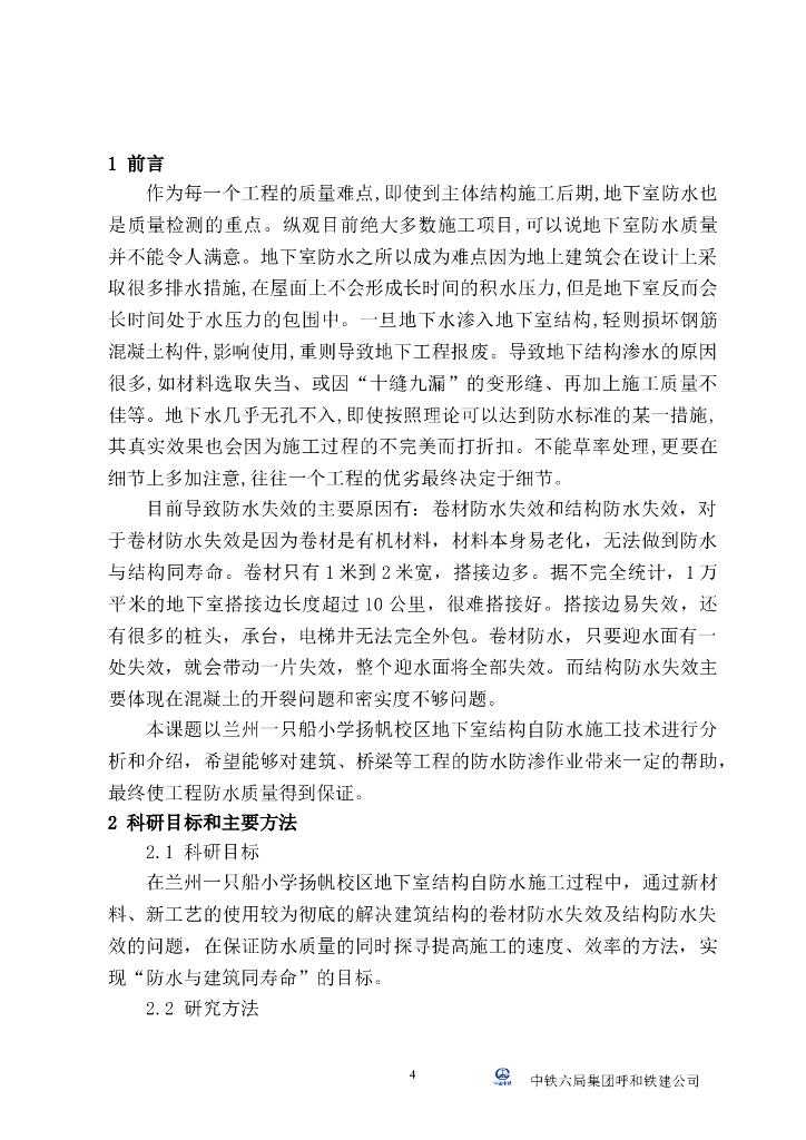 [国企]建筑地下结构自防水施工技术研究报告.doc