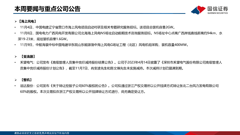 国信证券:风电/电网产业链周评(11月第2周):重点关注特高压柔性直流应用,全国海风建设持续向好.pdf