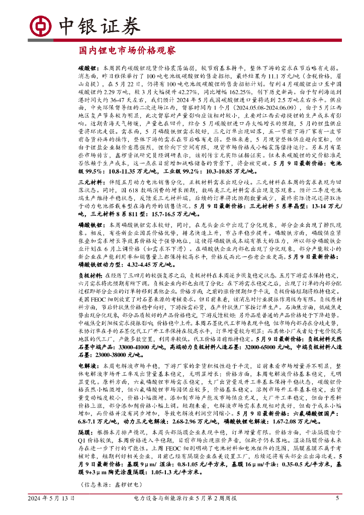 中银证券:电力设备与新能源行业周报:电力设备与新能源行业5月第2周周报.pdf