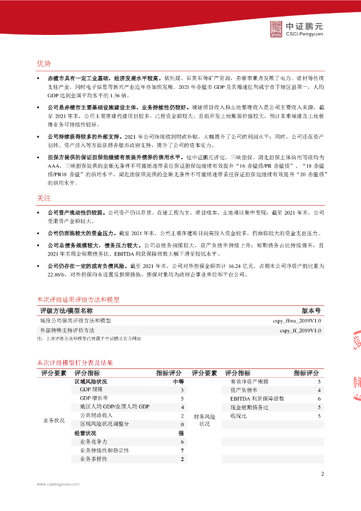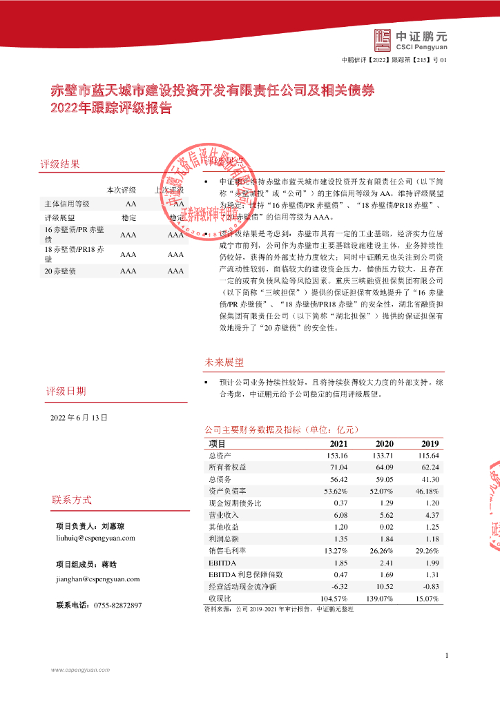 鹏元:赤壁市蓝天城市建设投资开发有限责任公司及相关债券2022年跟踪评级报告.pdf