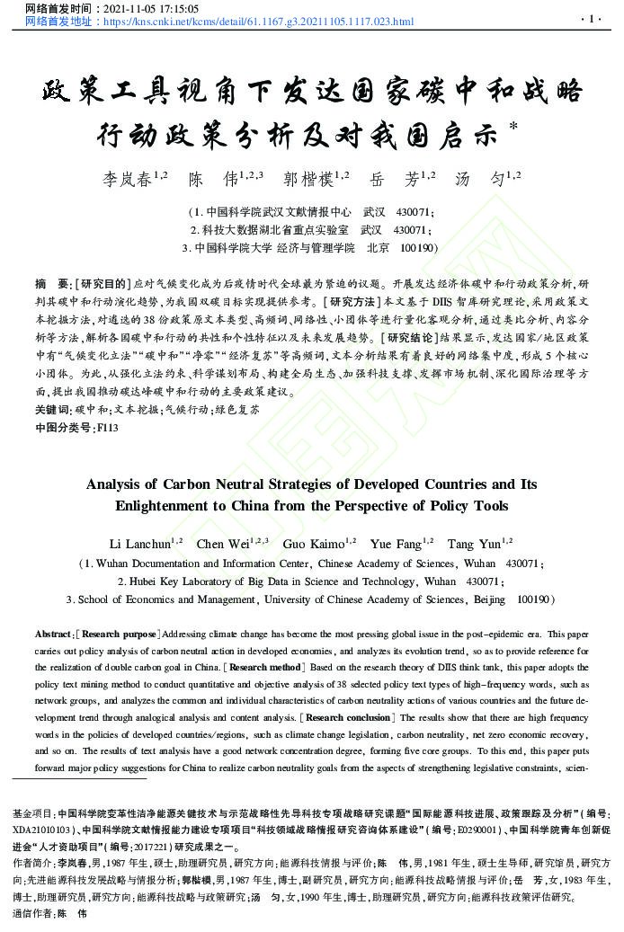 中国科学院:政策工具视角下发达国家碳中和战略行动政策分析及对我国启示.pdf