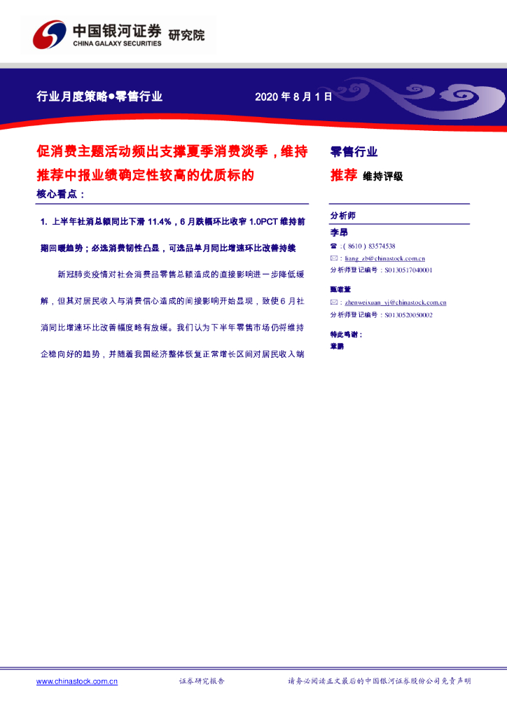 中国银河:零售行业月度策略:促消费主题活动频出支撑夏季消费淡季,维持推荐中报业绩确定性较高的优质标的.pdf