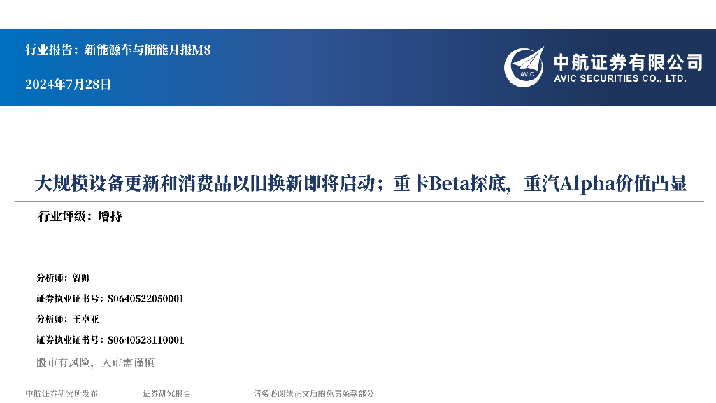 中航证券:新能源车与储能月报M8:大规模设备更新和消费品以旧换新即将启动;重卡Beta探底,重汽Alpha价值凸显.pdf