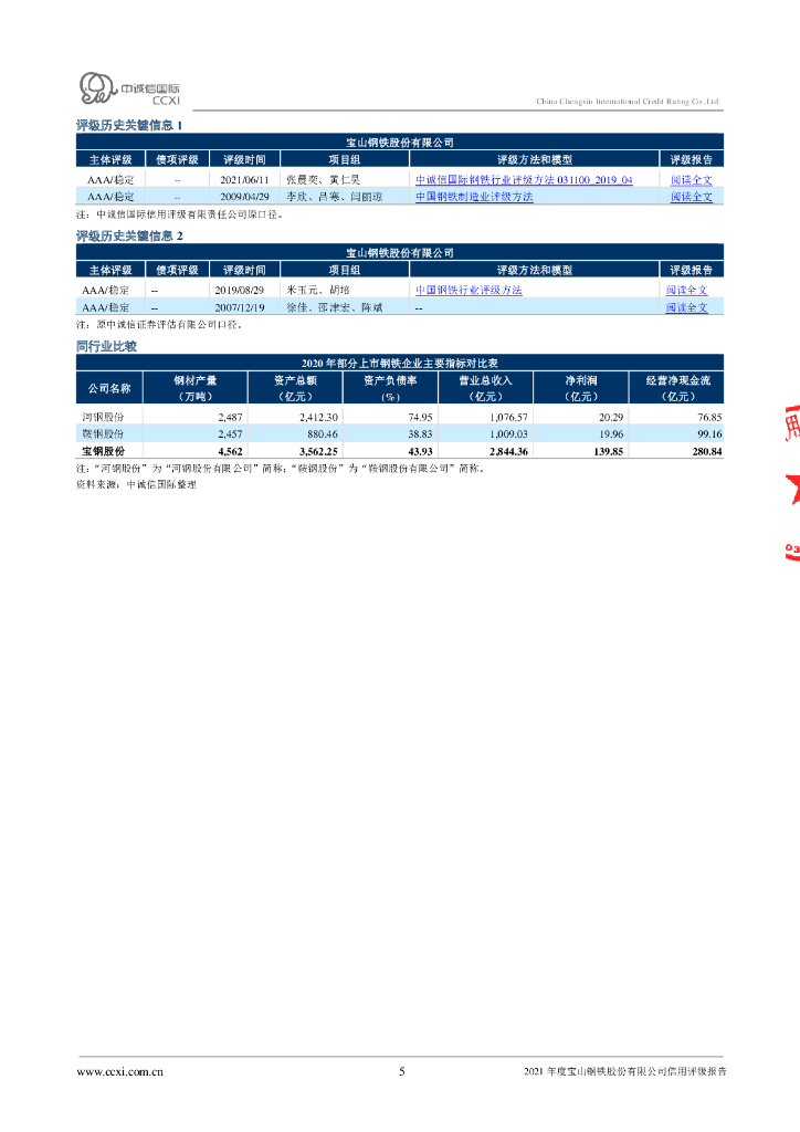 中诚信:宝山钢铁股份有限公司主体信用评级报告及跟踪评级安排.pdf