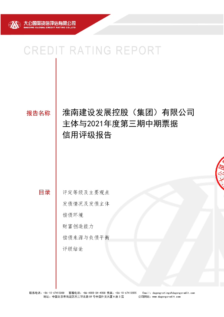大公:淮南建设发展控股(集团)有限公司主体与债项信用评级报告.pdf