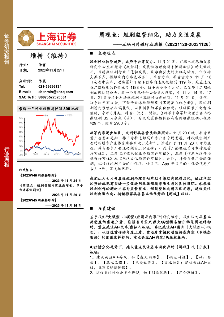 上海证券:互联网传媒行业周报:周观点:短剧监管细化,助力良性发展.pdf