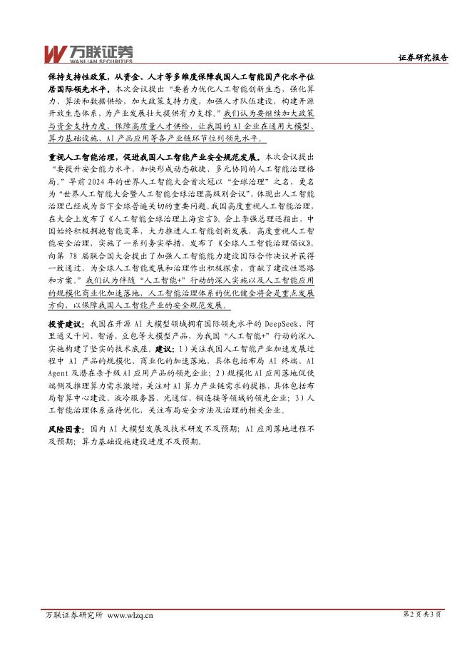 万联证券:计算机行业快评报告:深入实施“人工智能+”行动,大力推进人工智能规模化商业化应用.pdf