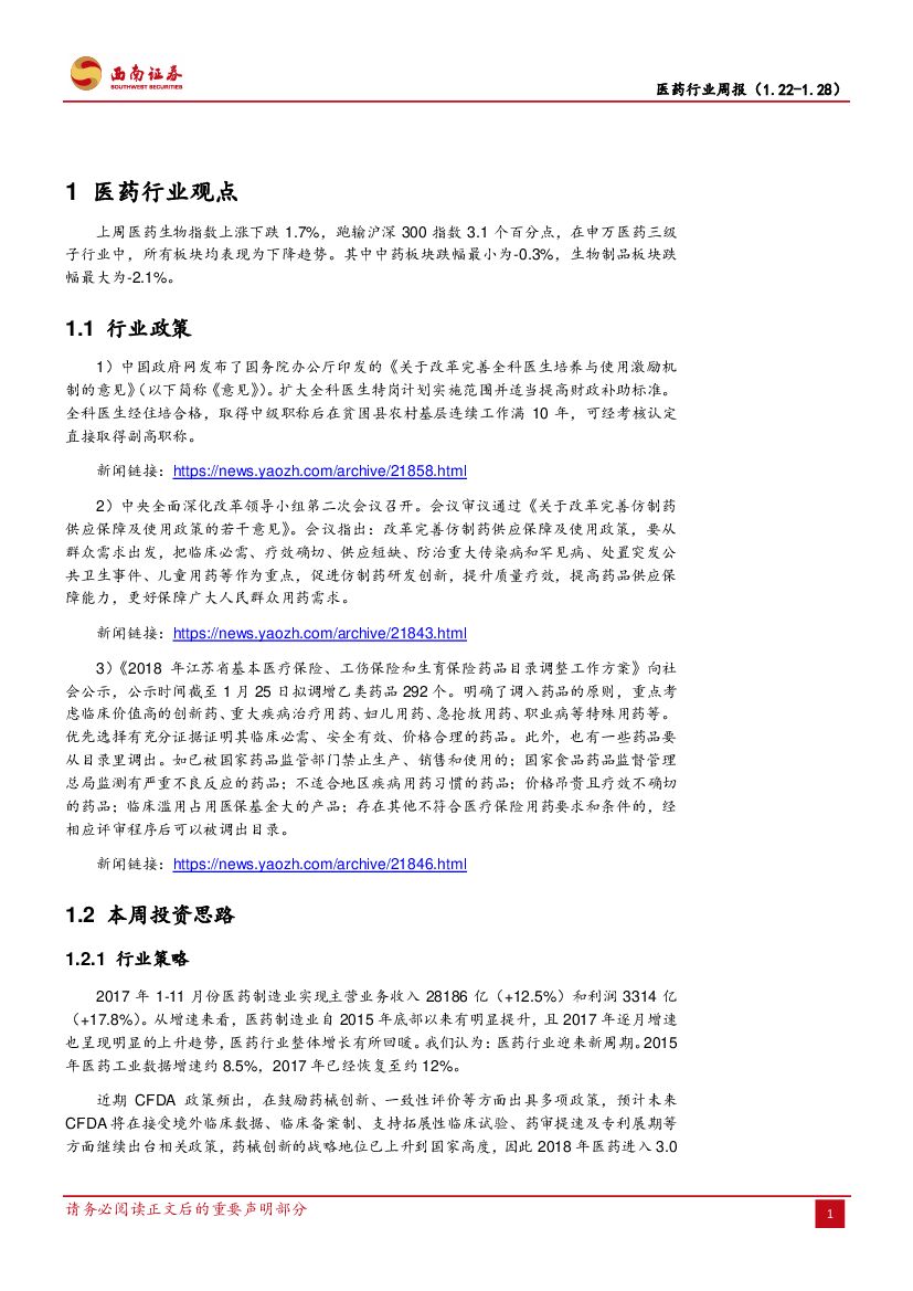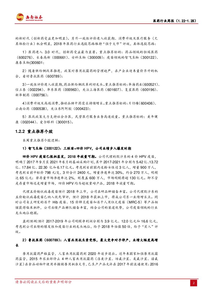 西南证券:医药行业周报:看好创新药、供给侧改革、消费升级,重点推荐智飞生物、鲁抗医药、片仔癀等.pdf
