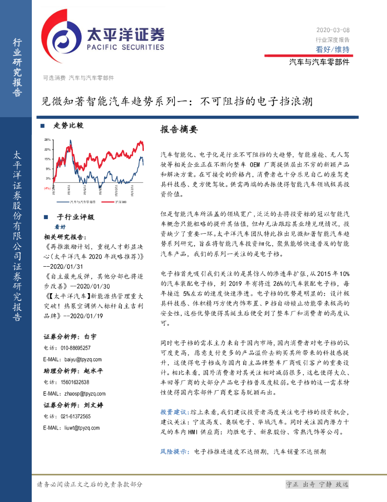 太平洋证券:见微知著智能汽车趋势系列一:不可阻挡的电子挡浪潮.pdf