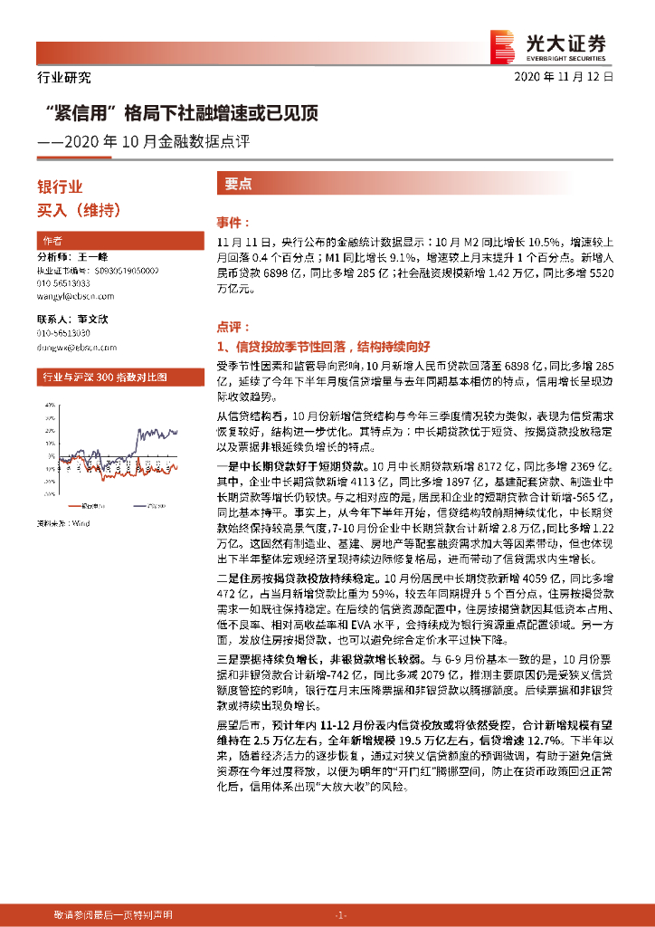 光大证券:银行业:2020年10月金融数据点评-“紧信用”格局下社融增速或已见顶.pdf