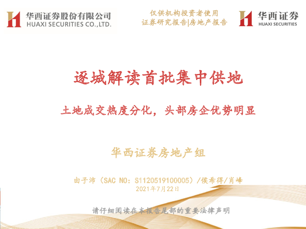 华西证券:房地产:逐城解读首批集中供地-土地成交热度分化,头部房企优势明显.pdf