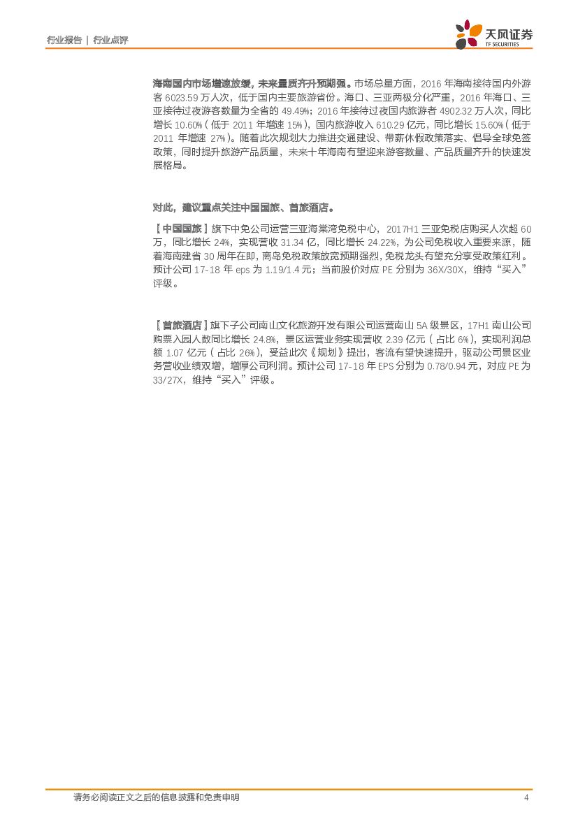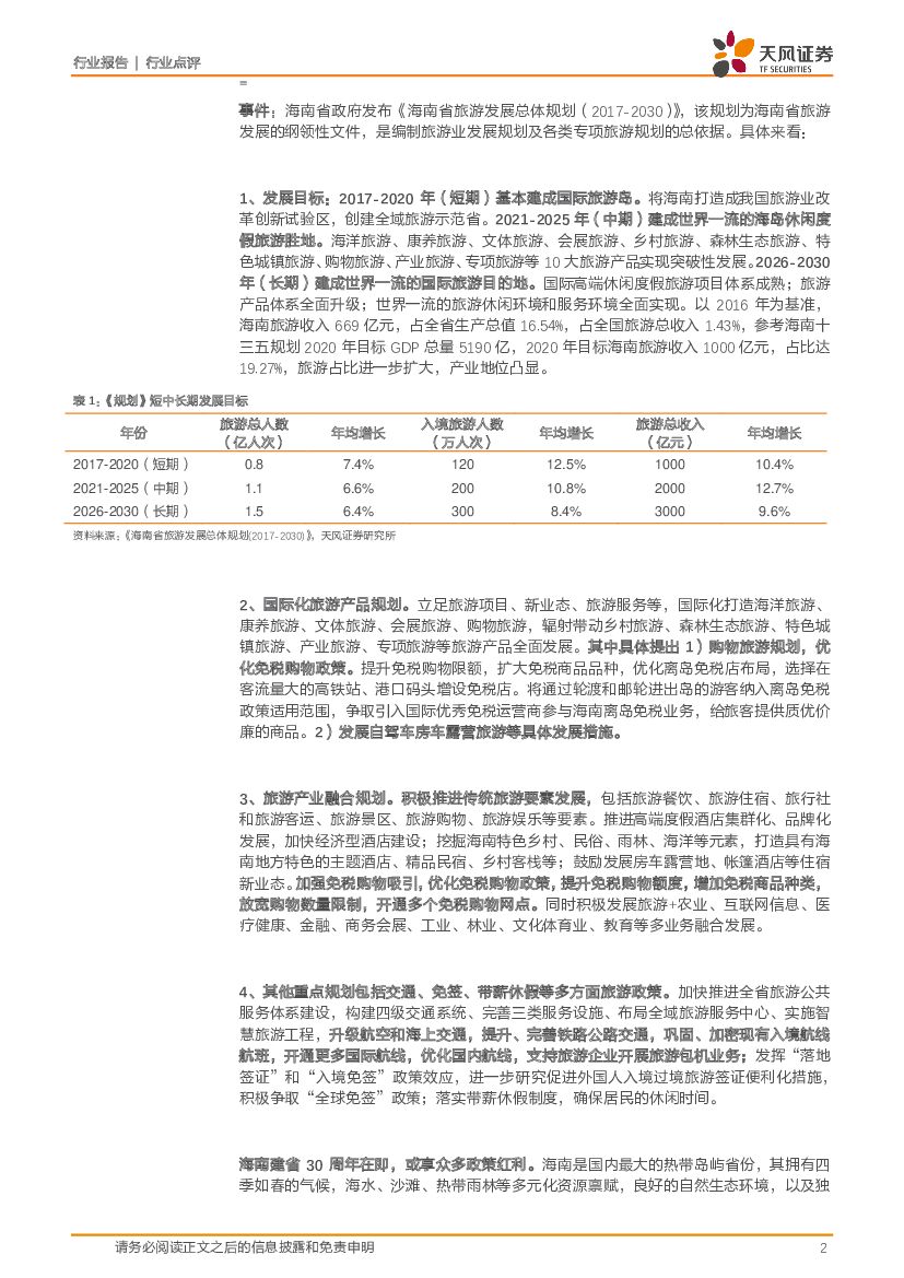 天风证券:旅游综合行业点评:《海南省旅游发展总体规划(2017-2030)》发布,免税望成海南旅游产业皇冠.pdf