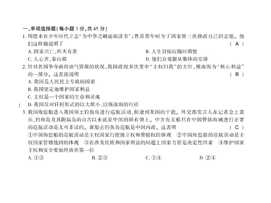 2021人教版八年级道德与法治上册习题课件:第四单元测评卷 (10张).ppt