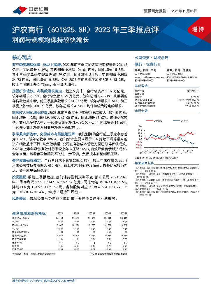 国信证券:沪农商行(601825)-2023年三季报点评:利润与规模均保持较快增长.pdf