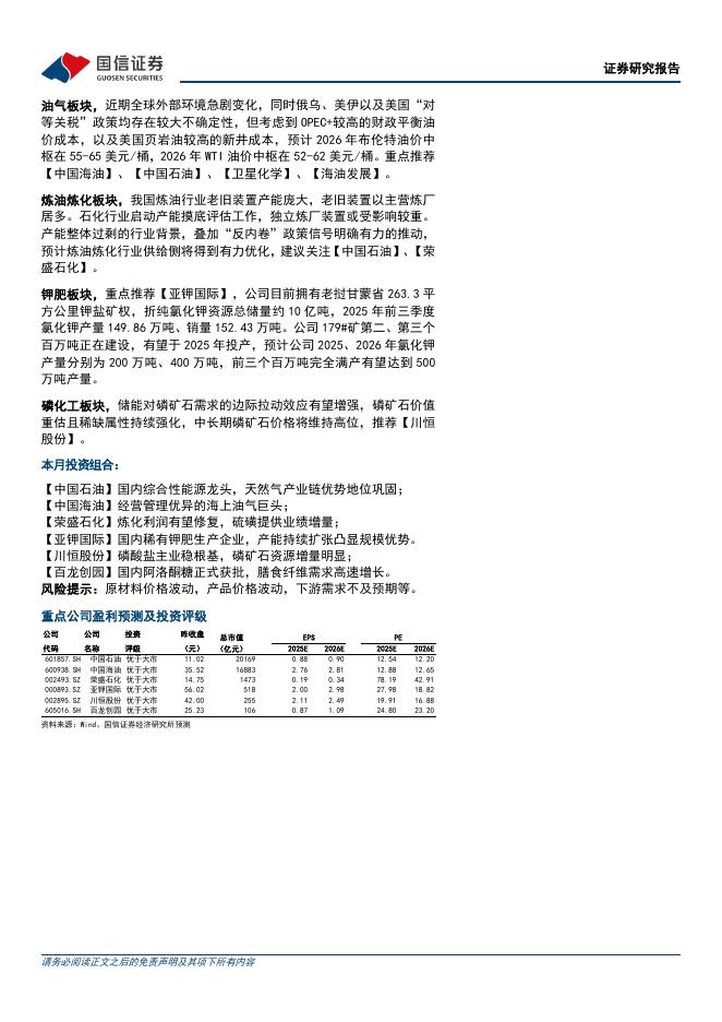 国信证券:石化化工行业2026年2月投资策略:推荐油气、炼油炼化、钾肥、磷化工的投资方向.pdf