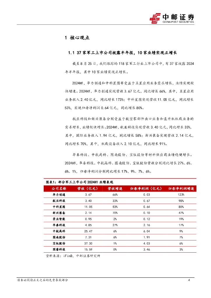 中邮证券:国防军工行业报告:37家军工上市公司披露半年报,10家业绩实现正增长.pdf