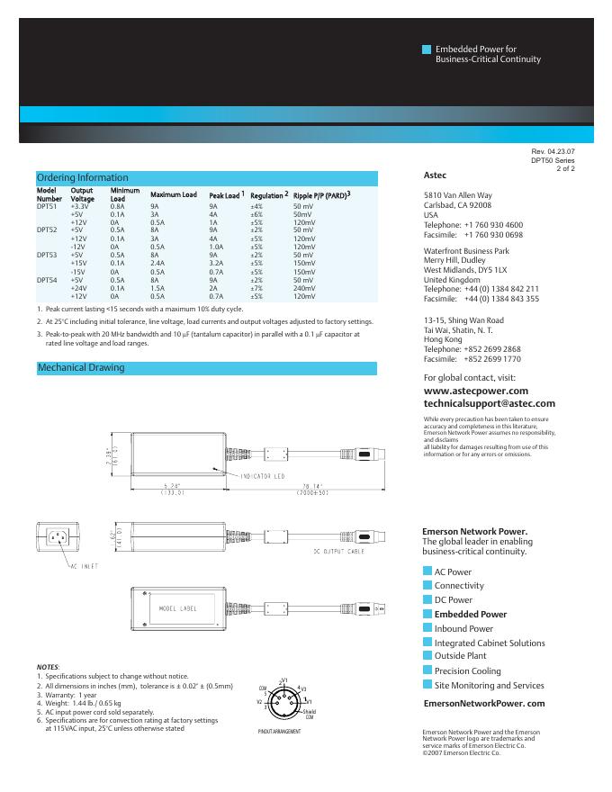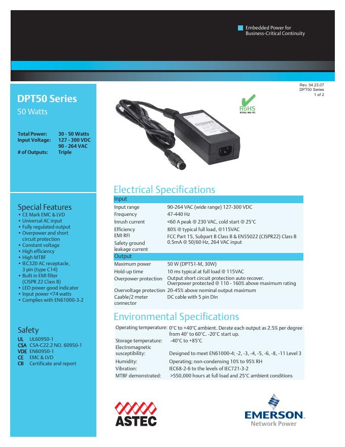EMERSON NETWORK POWER - DPT50 Series 50 Watts 数据手册.pdf
