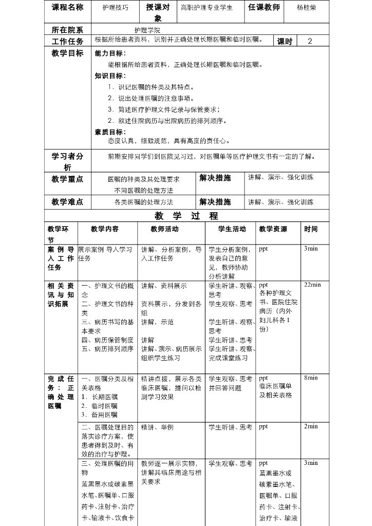 《护理技巧》电子教案-子任务一 正确处理医嘱.pdf