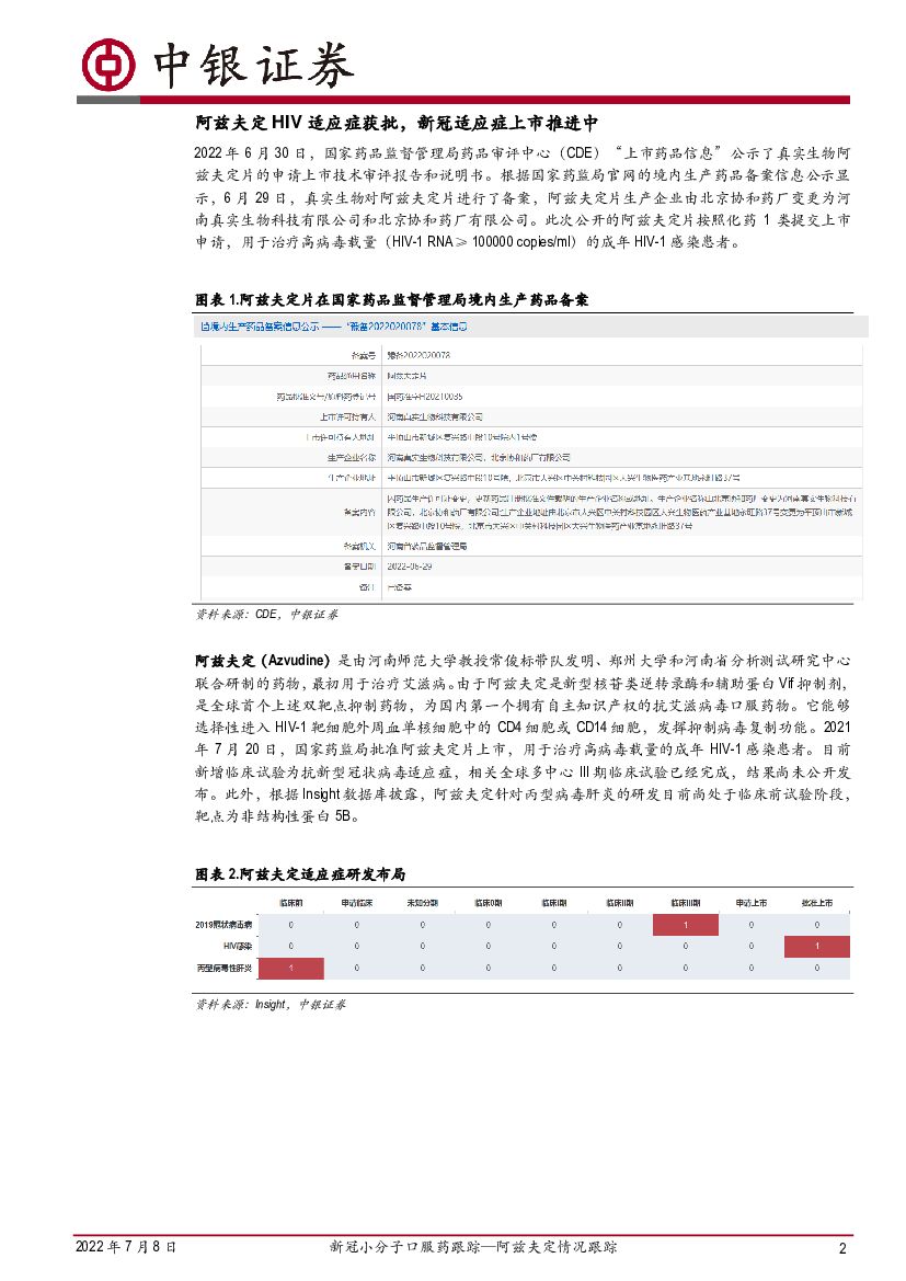中银证券:新冠小分子口服药跟踪—阿兹夫定情况跟踪:临床III期数据待公示,新冠适应症上市申请推进中.pdf